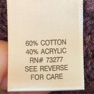 Pretty purple wrap cardigan sweater with a side button closure. In great pre-loved condition with no rips or stains. Great for layering over a turtleneck or long sleeve tee.