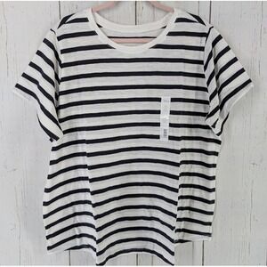 Sonoma Size 1X The Everyday Tee Womens Black White Stripe Short Sleeve Top NWT