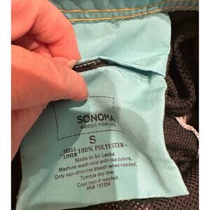 Get ready for summer with these stylish Sonoma swimming trunks! These trunks are in excellent condition and feature a unique grey, turquoise, and orange striped pattern.