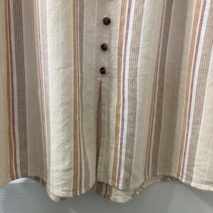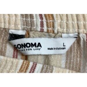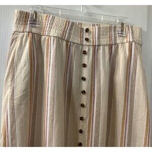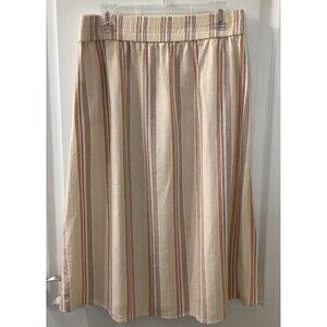 Sonoma A-line 2" Elastic Waist Pull On Skirt Faux Front Buttons Side Pockets Front Vent Linen Blend Stripe Tan Womens Size Large