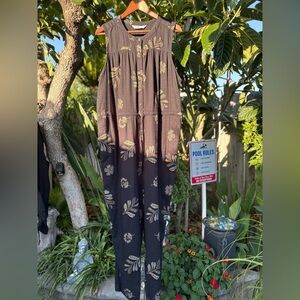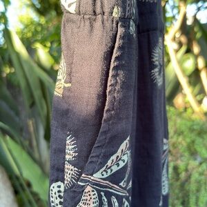 This Sonoma jumpsuit is the perfect addition to your wardrobe. Made from a soft and comfortable cotton-rayon blend, this jumpsuit features a flattering crew neckline. The tie waist accentuates your curves while the straight leg style elongates your legs. It features pockets and buttons for added convenience. With its easy on, easy care design, this jumpsuit is perfect for any occasion, whether you're traveling, attending a party, or just running errands. The jumpsuit comes in a beautiful black color with a vibrant leaf pattern that adds a bohemian touch to your outfit.