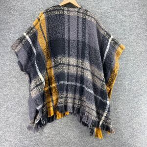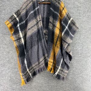 Sonoma Sweater Cape Women M Medium Gray Plaid Open Front Knit Short Sleeve