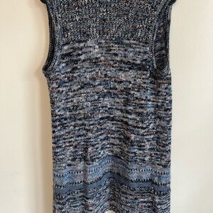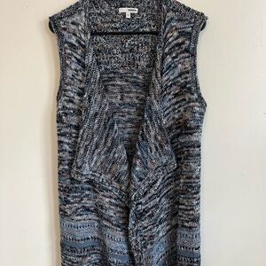 Wrap yourself in the cozy comfort of Sonoma's Boho Hippie Cottage Core Prairie Relaxed Sweater Cardigan, a perfect blend of style and warmth for your wardrobe. This medium-sized, sleeveless knit piece features an inviting mix of blue, tan, and white hues, crafted from a soft blend of 53% cotton and 47% acrylic. The relaxed fit ensures a casual, laid-back feel, ideal for any casual occasion.