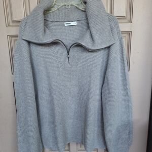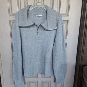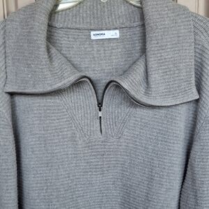Sonoma Sweater Gray SzXL 1/4Zip Wide Collar /Cuffs Long Sleeves Hem Slit Sides