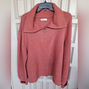 Sonoma Sweater Rust SzXL 1/4Zip Wide Collar /Cuffs Long Sleeves Hem Slit Sides