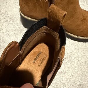 Chic tan suede ankle boots by Sonoma. Features a comfortable design. Ideal for everyday wear.