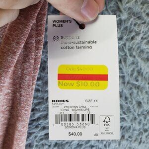 Sonoma Top Womens 1X Brown Chili Red V-Neck Flutter Sleeve Smocked Waist *NWT*