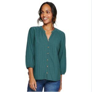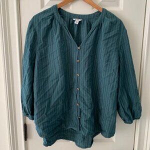 Sonoma green/teal top in size XL. Button detail down front and ribbed fabric. Cotton/Rayon blend.