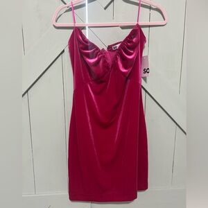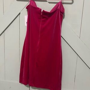NWT SO good for life dress. Hot pink Velvet strapless dress. Back zipper with hook and eye closure. Front v wire with ruching at bust.