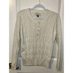 Sonoma Vintage pullover SWEATER Cable Knit buttons Ivory Cream Size XLarge
