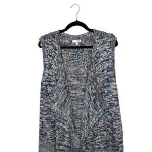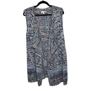 Sonoma Womans Woven Boho Drape Front Tunic Sweater Vest Size L Blue Multicolor