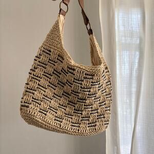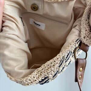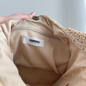 Sonoma Women's Beige Navy Woven Straw Crossbody Purse Lined
