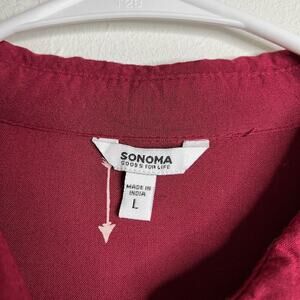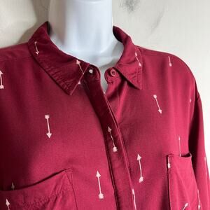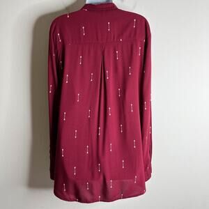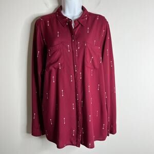Sonoma Women's Button Up Shirt Size L Arrow Print Burgundy Red Long Sleeve Rayon