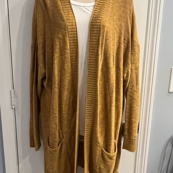 Sonoma Women's Duster mustard yellow Open front knitted Cardigan Sweater XL