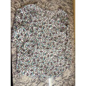 Sonoma Womens Floral Tunic Blouse Small Rayon VNeck 3/4 Sleeve Cottagecore