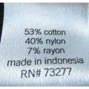 The material is cotton, nylon & rayon and it is machine wash. Made in Indonesia.