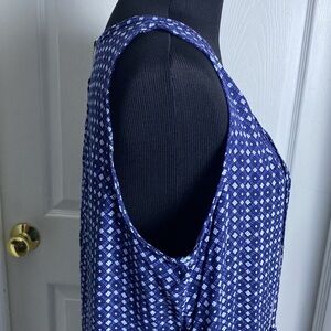 Sonoma Women’s Sleeveless Tank Top. Blue and white. Small v tie neckline. Sz L. NWT