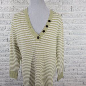 Sonoma Womens Sweater XXL Plus Long Sleeve Green Stripe Button Up SWE56E
