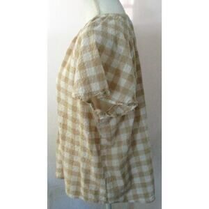 Sonoma Women's Tan & White Checked Short Sleeve V-neck Shirt Size XL