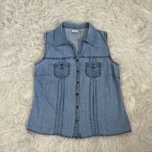 Sonoma Womens Western Grunge Denim Snap Button Up Sleeveless Blouse Size Medium