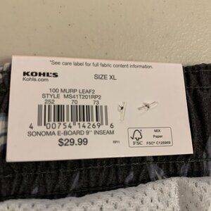 Sonoma XL Black Leaf Print Board Shorts With Stretch Waistband & 9-Inch Inseam