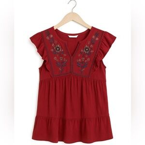Sonoma XL Embroidered Tiered Flounce Dress Magenta Boho Flutter Sleeve Lined