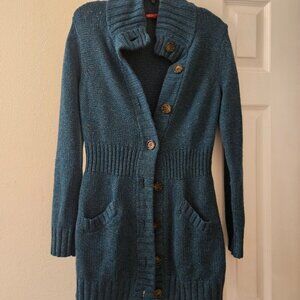 Sonoma blue long line cardigan Brown buttons winter wear pockets warm wool M