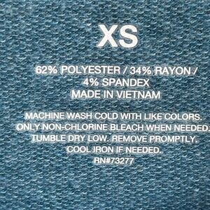Sonoma blue long sleeve asymmetrical oversized top. Good preowned condition. Officially size XS but would easily fit up to size L; see dimensions below). Soft polyester, rayon, and spandex blend fabric.