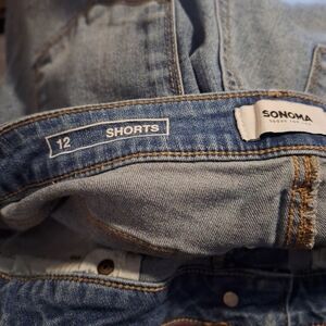 Sonoma button fly rough hem shorts size 12 side to side measurements is ft 16.5 " top of waist to bottom hem is 13" if you have any questions please message me bundle more items for bigger deals Bin-87