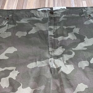 Brand new with tags from Sonoma! These denim shorts are a camo print and a high rise. Size 24 plus. Whiskered details, 5-pocket design. Contour waistband, zipper fly, 5”