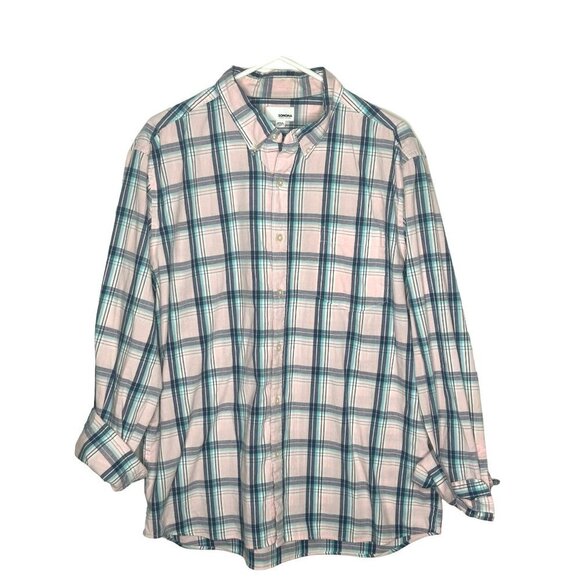 Sonoma men's shirt, Pink plaid shirt, Size XL shirt, Button-down shirt, Dress shirt, Casual wear, Formal wear, Comfortable shirt, Elegant shirt, Men's fashion, Men's clothing, Plaid pattern, Stylish shirt