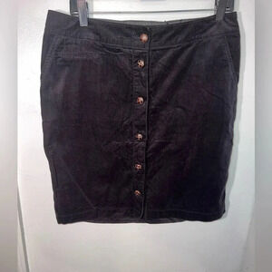 Sonoma, modern skirt,10, lightweight, ribbed corduroy,contrast wooden button down, A-line skirt with front slit pocket and faux pocket ,small insert elastic back waist