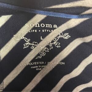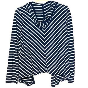 Sonoma striped hooded cardigan blue cream casual comfy roll up sleeve button L