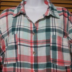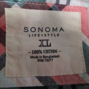 Sonoma top button down flannel coral & greens soft & comfy size XL