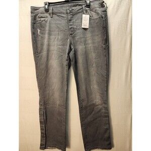 Elevate your denim game with these Sonoma women's adaptive straight jeans in a stylish gray distressed design. The hook and loop fly, adjustable waist, and ankle hook and loop make them comfortable and easy to wear. The jeans have pockets, and the plus size 18 waist ensures a great fit for all body types. Made from a blend of polyester, spandex, viscose, and cotton denim, these jeans have a mid-rise and a straight fit, making them perfect for any casual occasion. The inseam measures 29 inches, and the fabric type is denim. These jeans are a must-have for any woman's wardrobe.