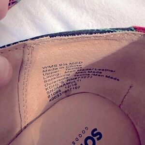 These flats by Sonoma are embroidered with a blue, pink, red, green and yellow floral/geometric pattern atop a black base and are in excellent pre-worn condition!