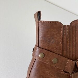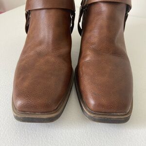Women’s Sonoma ankle boots. Boots are whiskey cognac color decorated with studded straps. Size 8.5. Has a slightly wedged heel. In good condition, but has a few small markings as shown in images. Smoke free home!