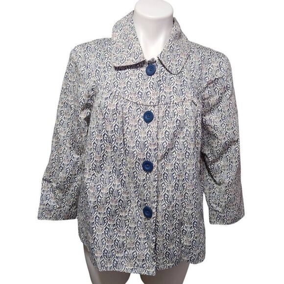 Sonoma Life + Style button front jacket blue grey print large cotton new