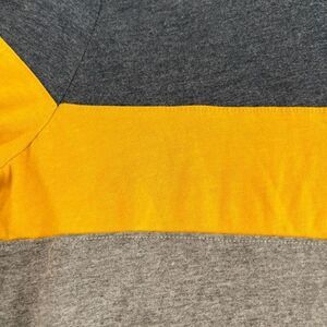 This is a men's long sleeve shirt by Sonoma featuring a colorblock design with navy, yellow, and gray sections. Made from a cotton-polyester blend, it offers comfort and style for casual wear.