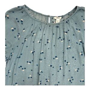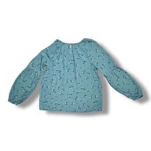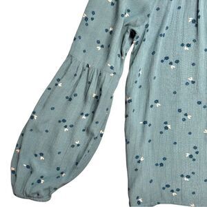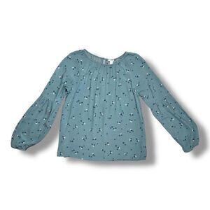 Sonoma Turquoise Blue Floral Print Peasant Blouse with Statement Sleeves Sz S