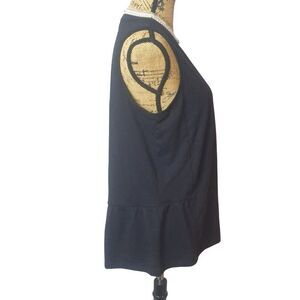 Sonoma Womens Black Sleeveless Top M Notchneck Peplum Ruffle Top Modern Feminine