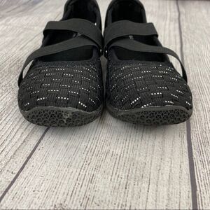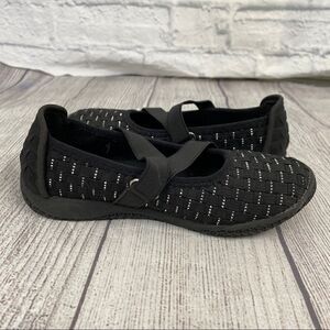 Sonoma girls slip on shoes, weave pattern, black with silver accents, elastic strap shoes, rubber bottoms. Size 12
