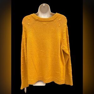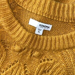 Like New Sonoma goldenrod yellow knit sweater. Fisherman style with pearl knit sleeves, and pattern open weave bodice. Crew neck. Size XL