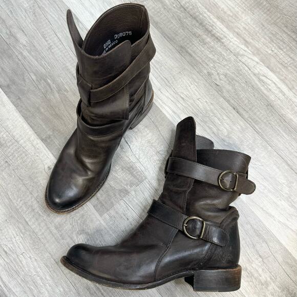 Sonora Burnished Brown Leather Brooklyn Ruina Moro Short Moto Boots Size 8 1/2 B