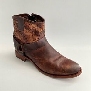 Sonora Isabella Leather Western Distressed Ankle Boots Brown 10