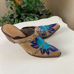 Sonora by Double H Slip On Hand painted Western Boho Leather Mules Size 7.5 M