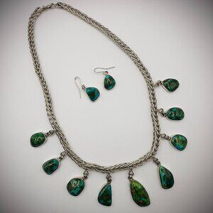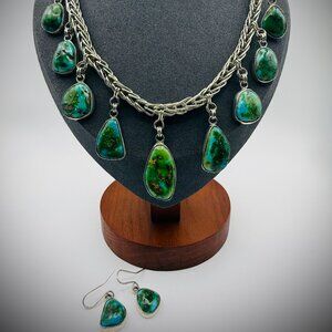 Sonoran Gold Turquoise Necklace & Earrings Set — Sterling, Signed “Smokey”, 18"
