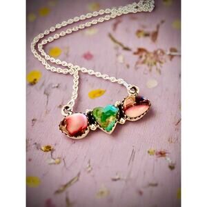 Sonoran Gold Turquoise & Rose Dahlia Heart Necklace 16-18”