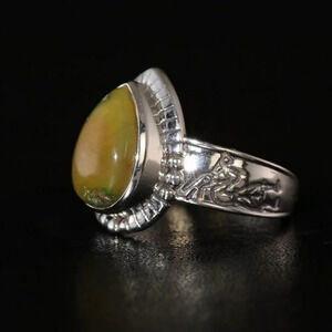 Artisan Crafted Natural Sonoran Gold Turquoise Solitaire Ring In Sterling Silver.