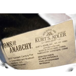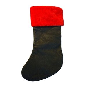 Bring your favorite motorcycle club into your decorating this Christmas season Detailed stocking features faux leather front with cloth backing silver twisted cord piping and faux fur cuff Comes ready-to-hang on matching black leather loop One sided design Dimensions: 19" H x 9.25" W Material(s): polyester/metal